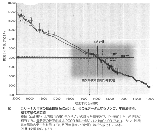 『縄文はいつから』(小林謙一、工藤雄一郎編、新潮社 2011年刊)でも、「大平山元Ⅰ遺跡(おおだいやまもといちいせき)から出土した土器から微量ですが炭化したものが付着していました。この炭化物の炭素14年代測定が1998年に行われました。