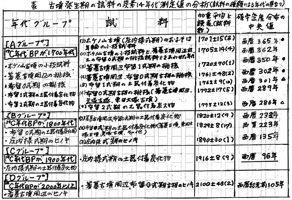 「振り返ってみれば、歴博が炭素14年を利用して、弥生時代遡上論を展開し始めたころには、すでに、本川遺跡や朝日・八王子遺跡で土器付着物が著しく古く出ている現象が報告されていた。それなのに学会での十分な討論も経ずに、新聞発表を行ない、さらには西田氏の貴重な指摘があったにもかかわらず、それを無視して今日を迎えてしまった。」