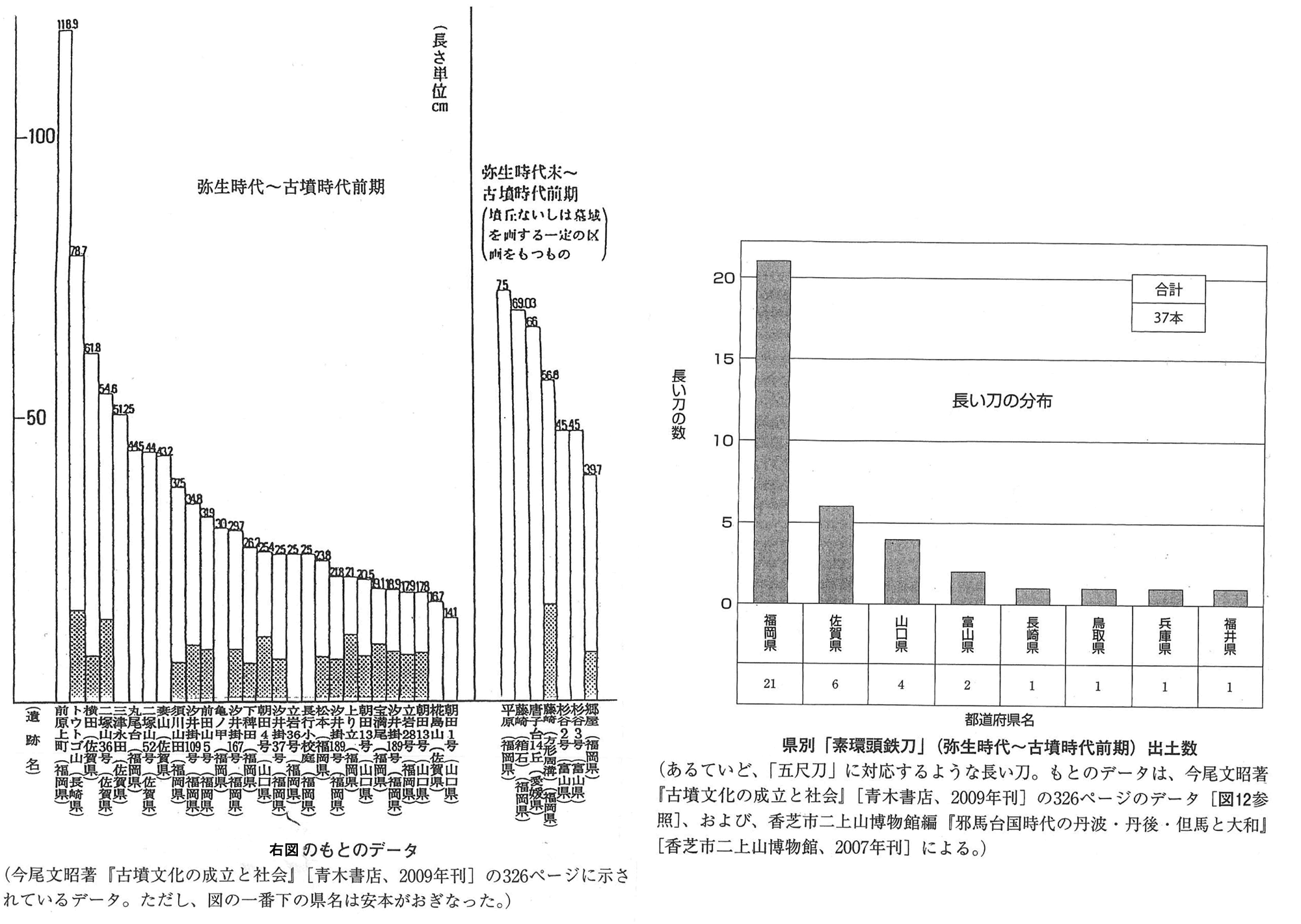 この拙論で示した上の方にある図の「弥生時代の鉄鏃の県別出土数」は、寺沢薫氏が、指示または支持された川越哲志氏の『弥生時代鉄器総覧』によっている。