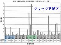 5世紀になると、100メートル以上の巨大前方後円墳の築かれることがより多くなり、その分布のようすは、奈良県と福岡県の格差が大きくなる傾向にある。つまり、時代が下がるにつれ、福岡県にくらべ、奈良県の優位性が進むのである。 |